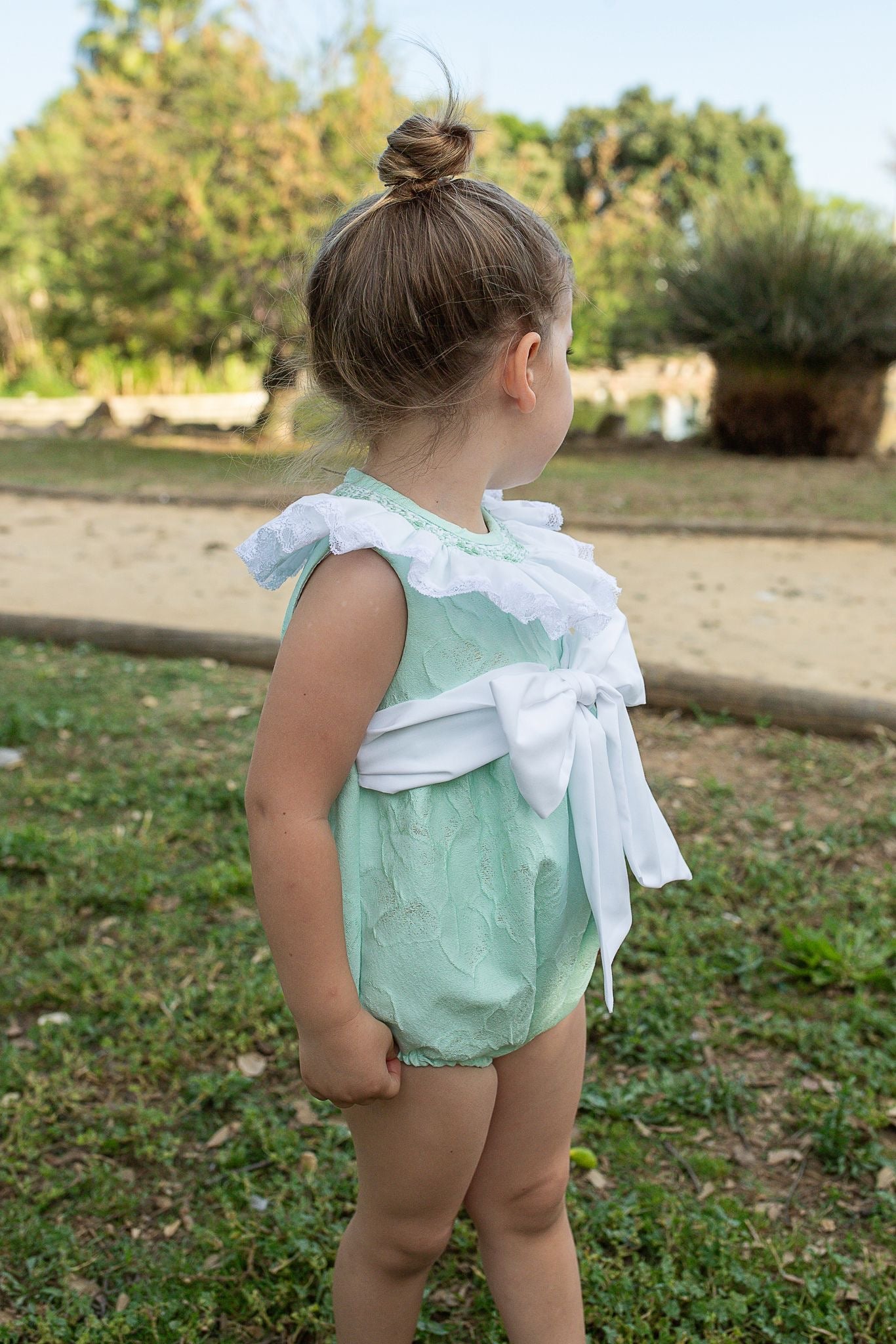 Naxos Pastel Green Baby Girl Romper – Luxury Spanish Bow Romper
