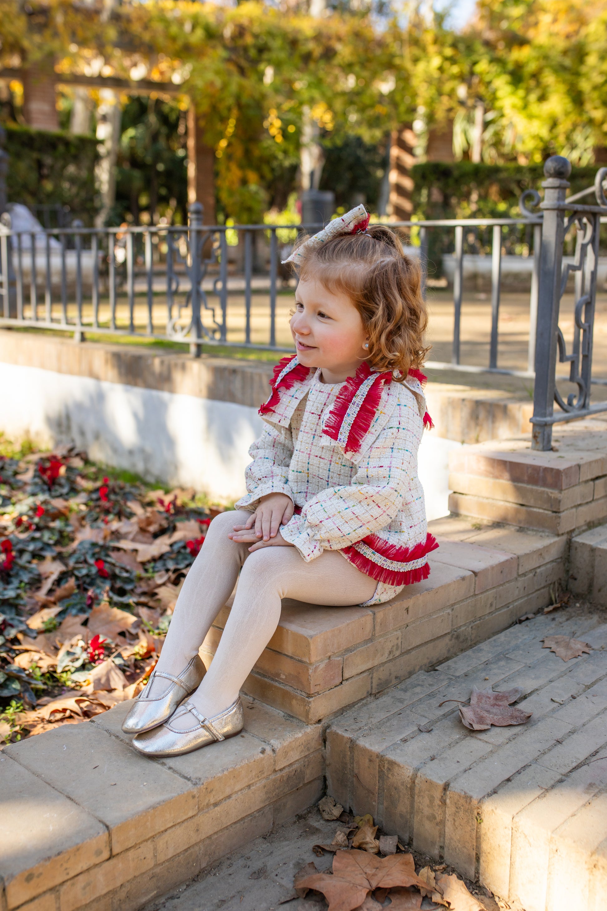 Naxos Baby Girls Red & Cream Tweed Bloomer Set | Spanish Outfit with Statement Trim (6M–2Y)