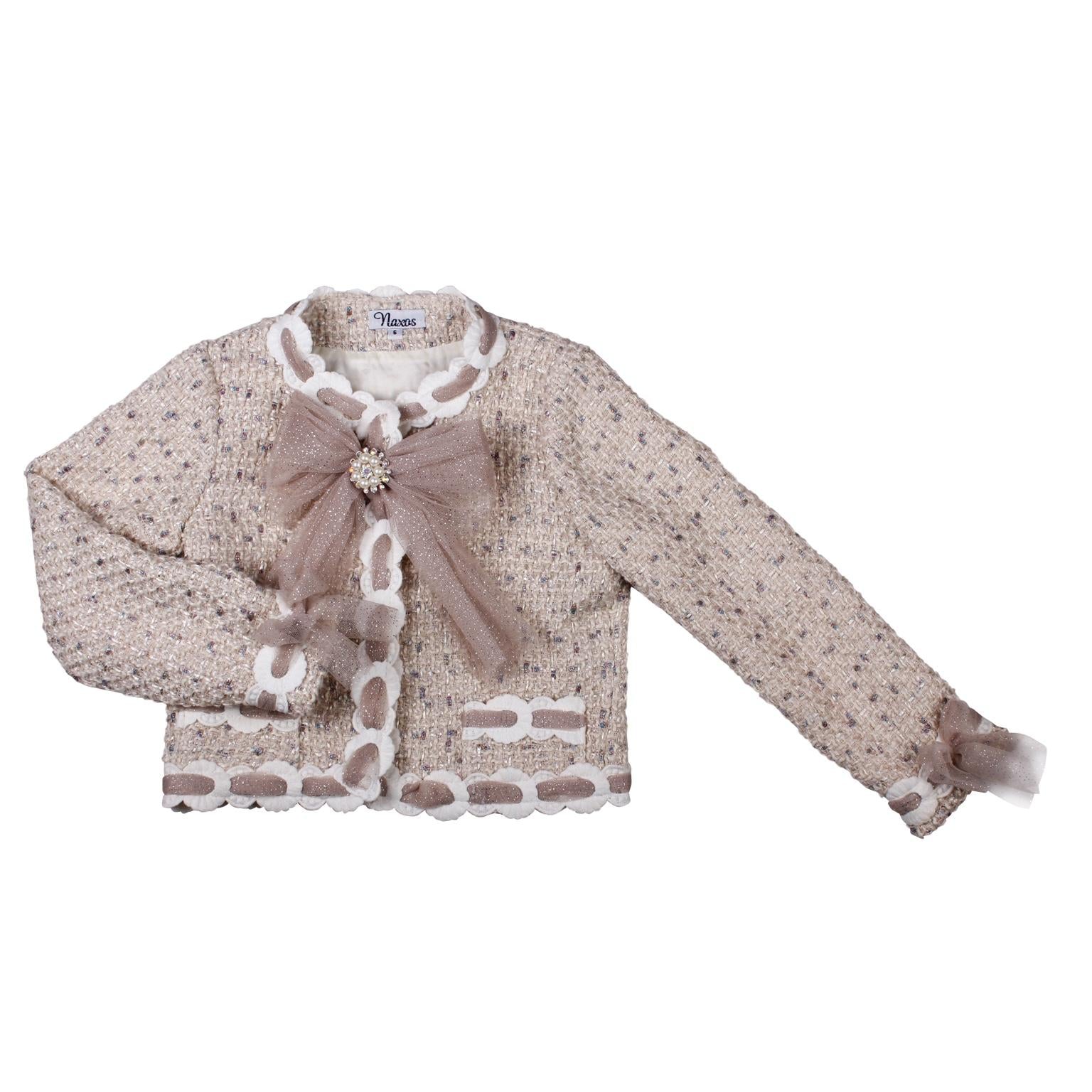 Naxos Girls 3-Piece Tweed Blazer, Shirt & Shorts Set | Champagne Sparkle Outfit with Bows & Jewel Detail (8–12 Years)