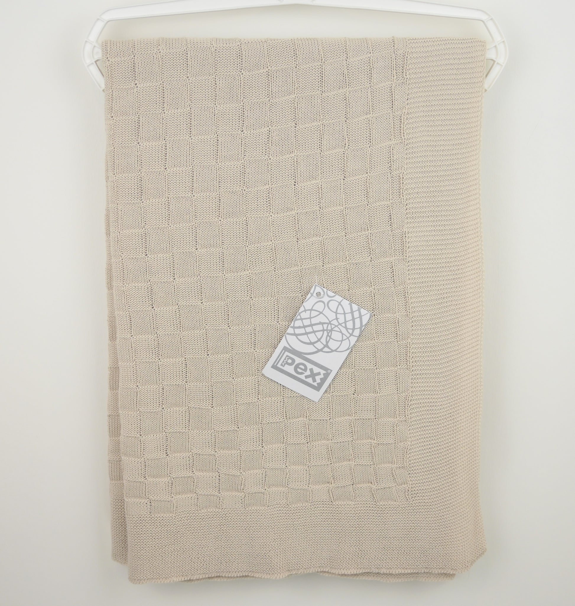 Wrap your little one in timeless comfort with this beautifully crafted knitted baby shawl in a soft natural tone. Featuring an elegant textured basket-weave pattern and finished with a classic garter-stitch border, this blanket is designed to feel as luxurious as it looks.