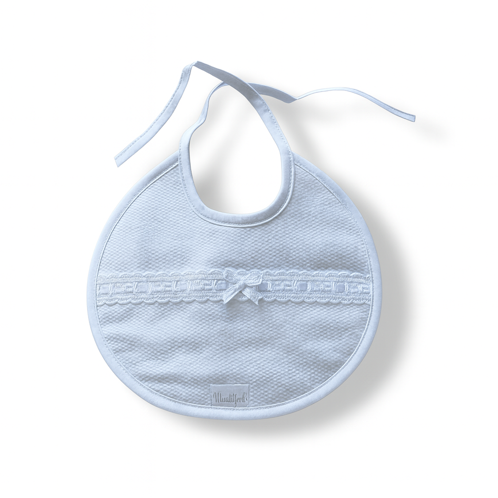 Martifanel Soft Pique bib with ribbon slot & bow detail.